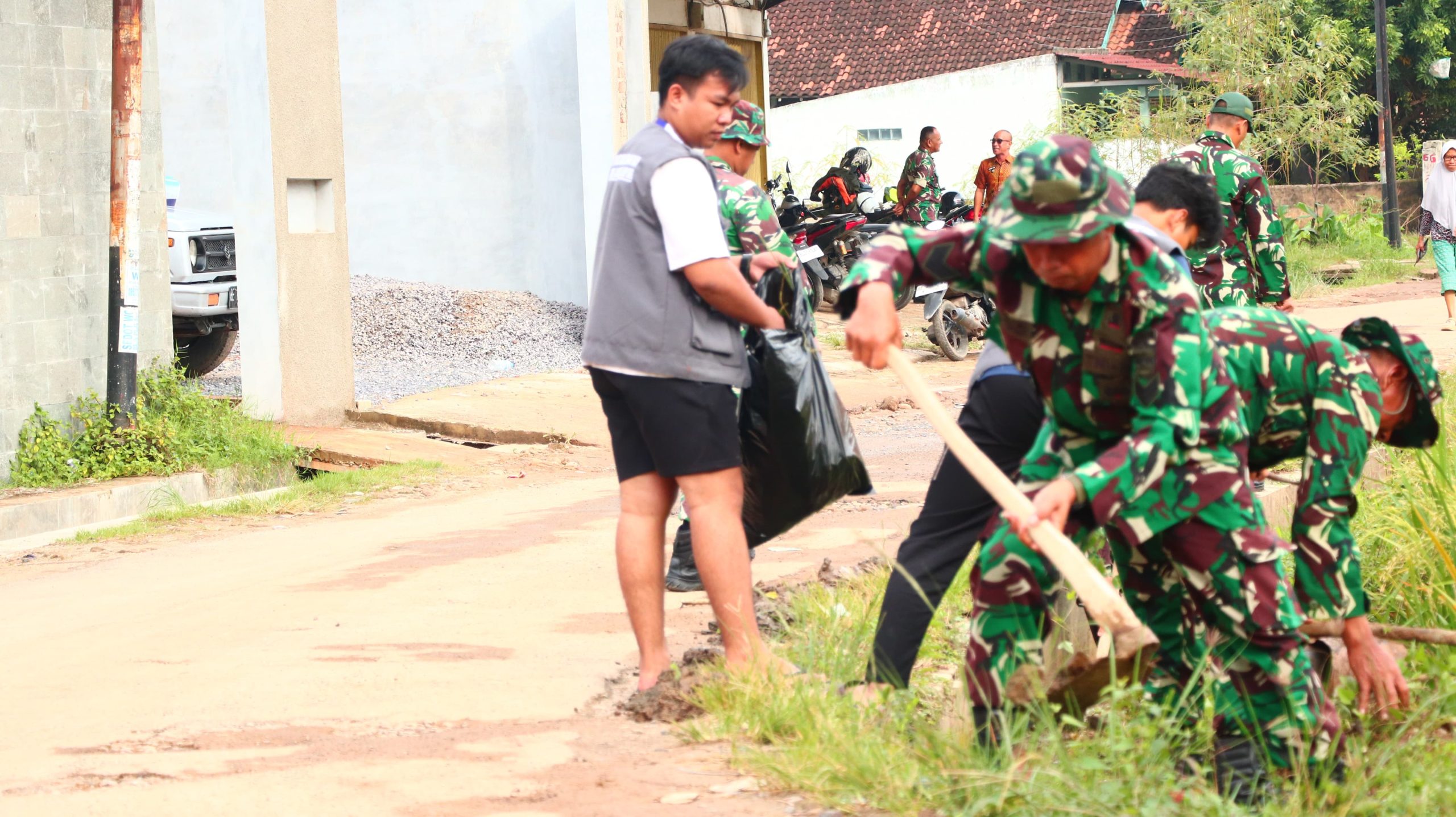 Anggota Koramil 410-04/TKT, Gotong Royong Bersihkan Selokan