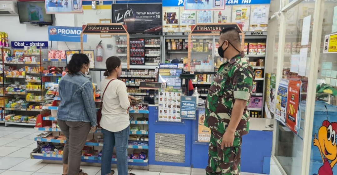 “Kami selalu berkoordinasi bersama Karyawan yang ada di Indomart untuk membantu pemerintah daerah dalam melakukan pembinaan, pengawasan pelaksanaan protokol kesehatan, sekaligus mensosialisasikan penerapan protokol kesehatan dalam menekan penyebaran covid-19 dimasyarakat, terlebih PPKM ini.”Pungkas Serka Sugiyarto.(Arda 72)
