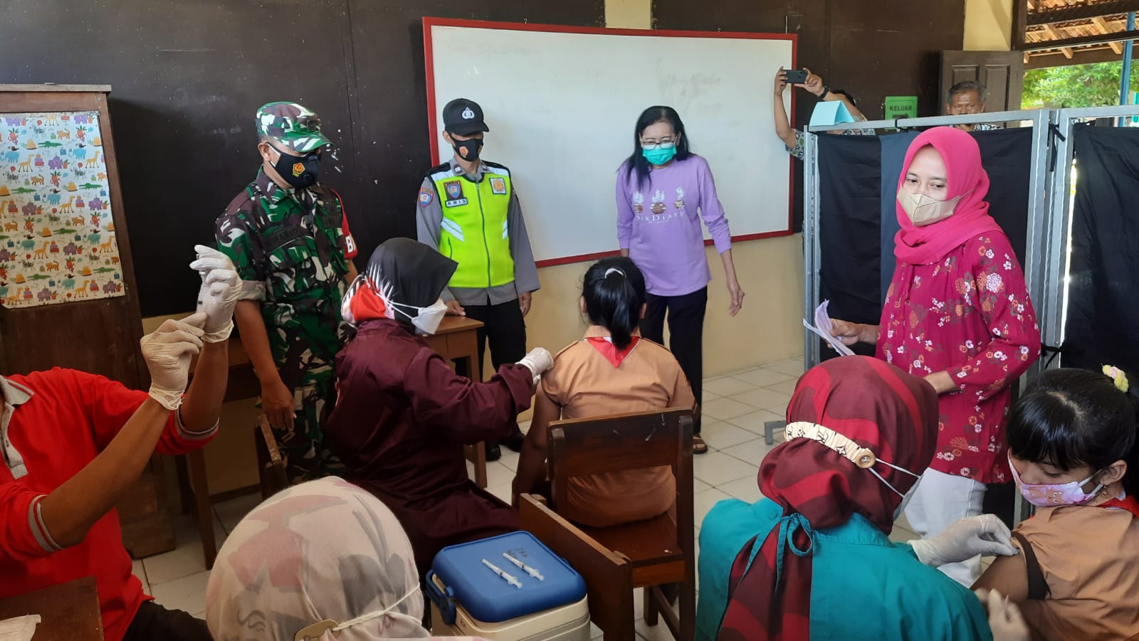 Untuk meningkatkan kekebalan tubuh, Vaksin kali ini menyasar kepada anak usia 6 sampai dengan 11 Tahun. Sebelum melaksanakan vaksin para peserta melaksankan pendaftaran, cek kesehatan dan screening, apabila sudah dinyatakan sehat dan aman dilaksanakan penyuntikan vaksin secara bergantian.