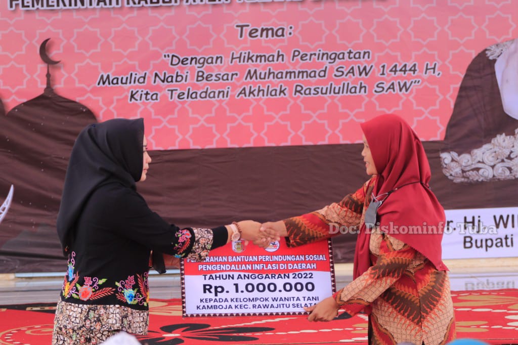 Acara ini dirangkai dengan Peringatan Maulid Nabi besar Muhammad Saw yang diikuti oleh seluruh warga dengan khusyu dan penuh sukacita. Pada kesempatan ini dalam rangka optimalisasi pelayanan masyarakat, Bupati Winarti memberikan bantuan berupa Sepeda motor untuk kepala kampung/kepala dusun sebanyak 7 unit, Kendaraan roda 2 jemput anak akseptor 1 unit,Laptop untuk guru TK/PAUD, SD, SMP sebanyak 12 unit, Hibah 7 rumah ibadah, hibah untuk 2 pondok pesantren, Bantuan alat sistem pertanian (Alsintan) untuk 3 Gapoktan, Hibah kelompok tani untuk 1 kelompok dan Bantuan dana kelompok wanita tani (KWT) untuk 2 kelompok KWT.