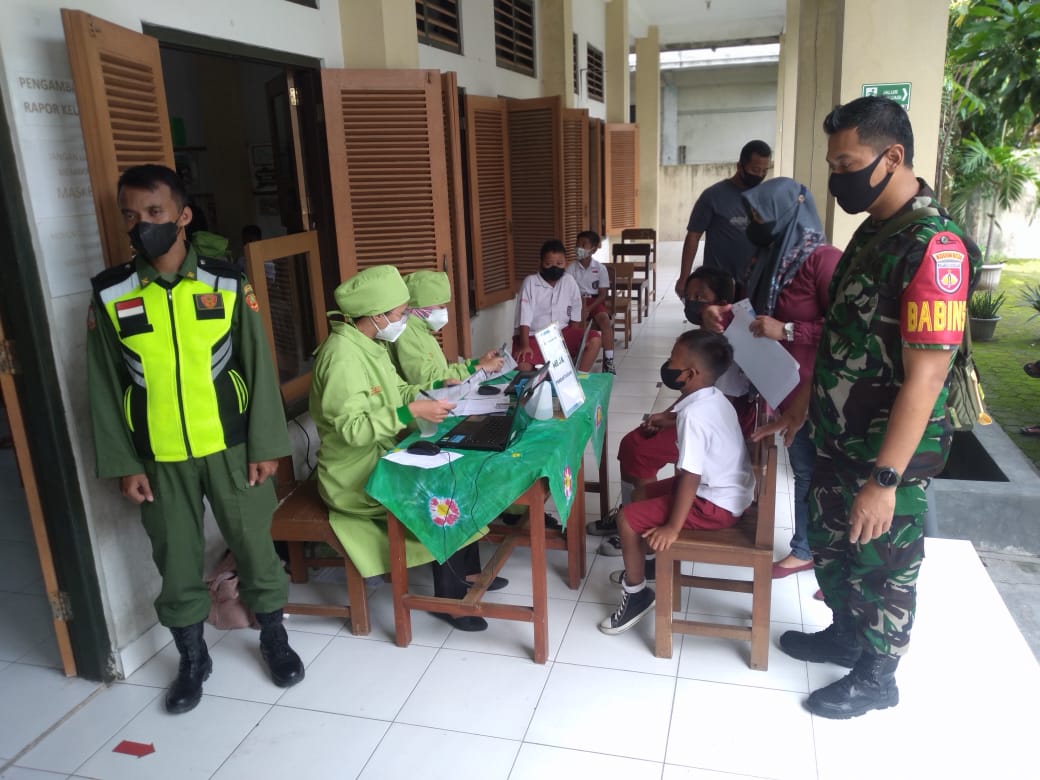 “Guna mendukung ketertiban dan kelancaran kegiatan vaksin tersebut, maka Babinsa ikut terjun langsung dalam pelaksanaan Vaksin tersebut, dan memberi motifasi kepada anak- agar tidak takut untuk di Vaksin.”ujarnya.