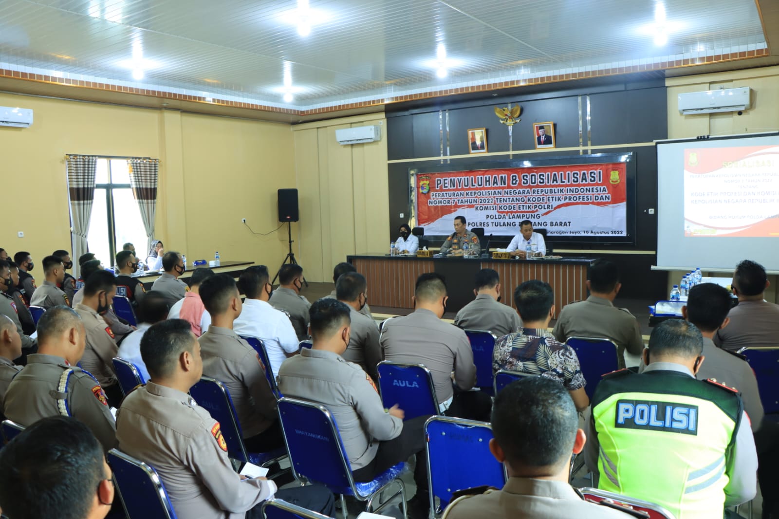 Kegiatan sosialisasi ini berlangsung hari Kamis (10/08/2022), pukul 09.00 WIB, di aula Mapolres Tulang Bawang Barat dan diikuti oleh 67 personel yang terdiri dari perwira dan bintara.