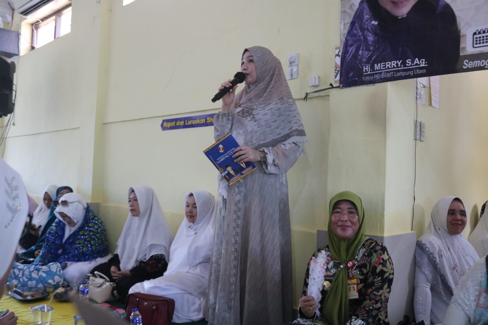 Tampak hadir Ketua BKMT Lampung Utara, Hj. Merry, S. Ag., Pembina BKMT, H. Amrullah, Lurah Cempedak, Dedi Erwansyah, Bakal Calon Anggota Dewan dari Partai PKB, Sandy Juwita, S. Pd., serta beberapa ibu-ibu yang turut hadir, Ibu Siti Najedah Man Kodri, Ibu Sri Mat Soleh, Ibu Neli Adrie, dan Ibu Soleha Sofyan.