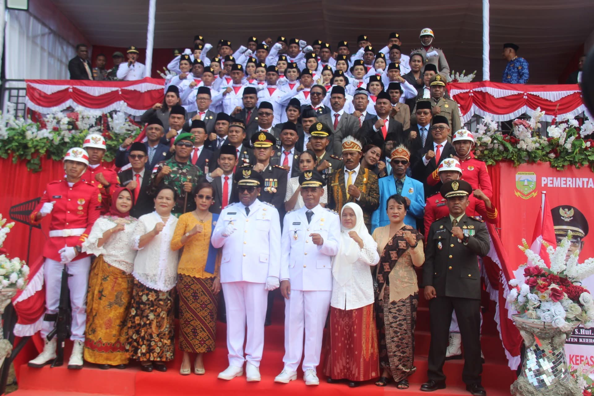 Turut hadir unsur Forkompinda Keerom diantaranya, Drs. H. Daud, MSi (Wabup Keerom), AKBP Astoto (Kapolres Keerom) Kanesius Kango, S.Sos (Ketua DPRK Keerom) dan tamu undangan lainnya. Upacara juga diikuti ribuan peserta yang berasal dari unsur siswa/i sekolah, ASN, TNI/Polri dan lain-lain.