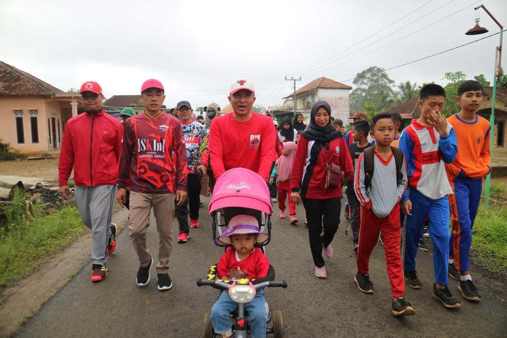 NUSAN.ID, LAMPUNG BARAT – Minggu (30/10/2022), Bupati Lampung Barat H. Parosil Mabsus menghadiri jalan sehat sekaligus melakukan pembagian seragam gratis di Lapangan Pekon Semarang Jaya Kecamatan Air Hitam.