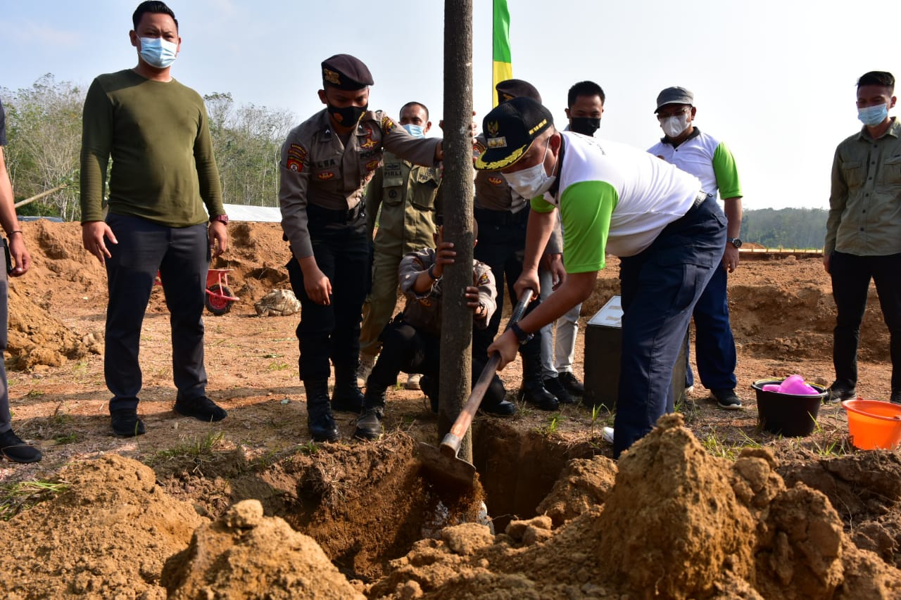 NUSAN.ID,TULANG BAWANG BARAT – Bupati Tulang Bawang Barat Umar Ahmad, SP memperingati Hari Lingkungan Hidup Se-Dunia Tahun 2021 di Lahan Calon Mapolres Tulang Bawang Barat sekaligus melaksanakan Peletakan Batu Pertama Pembangunan Mapolres setempat, Panaragan (11/06/2021).