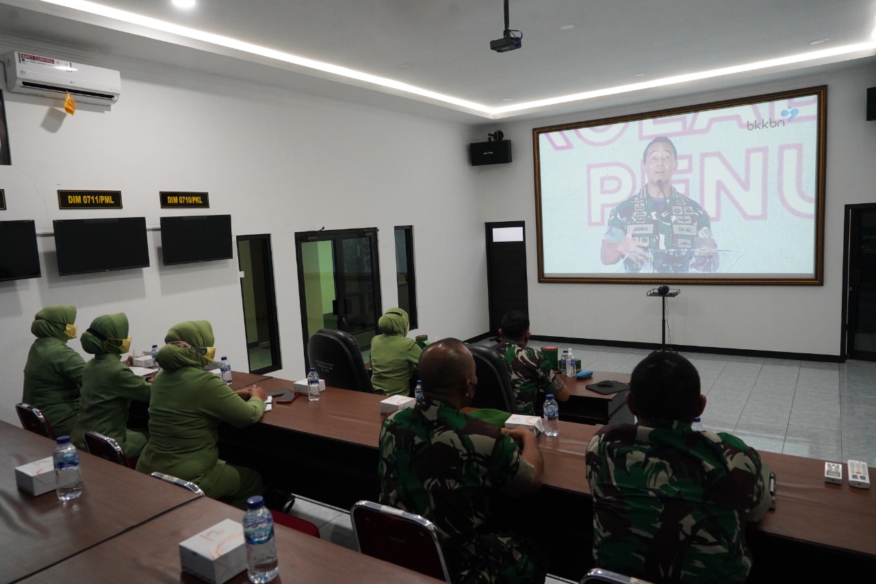 NUSAN.ID, BANYUMAS – Bertempat di Ruang Pusdalops Makorem 071/Wijayakusuma, Danrem 071/Wijayakusuma Kolonel Inf Yudha Airlangga, S.E., dengan didampingi Ketua Persit Kartika Chandra Kirana Koorcab Rem 071 PD IV/Diponegoro yang juga selaku Ketua Dharma Pertiwi Koorcab Purwokerto Daerah D Ny. Natania Yudha Airlangga, ikuti Zoom Meeting “Kick Off Kolaborasi Percepatan Penurunan Stunting”. Senin (08/08/2022).