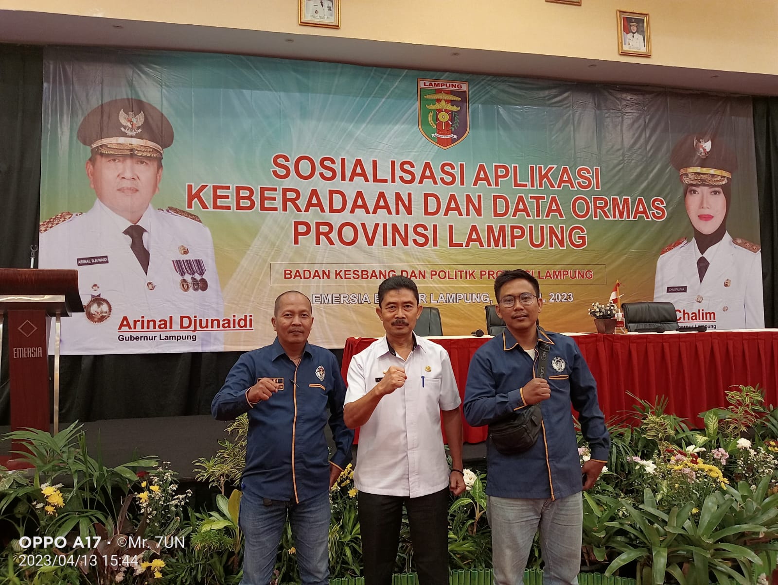 NUSAN.ID, BANDAR LAMPUNG Dewan Pimpinan Pusat (DPP) Komite Aksi Masyarakat dan Pemuda Untuk Demokrasi (KAMPUD) menghadiri acara sosialisasi aplikasi Organisasi masyarakat (Ormas) yang digelar oleh Badan Kesatuan Bangsa dan Politik (Bakesbangpol) Provinsi Lampung, di Ballroom Hotel Emersia, di Jalan Wolter Monginsidi, Bandar Lampung, pada Kamis (13/04/2023) sekira pukul 13.30 WIB sampai dengan selesai.
