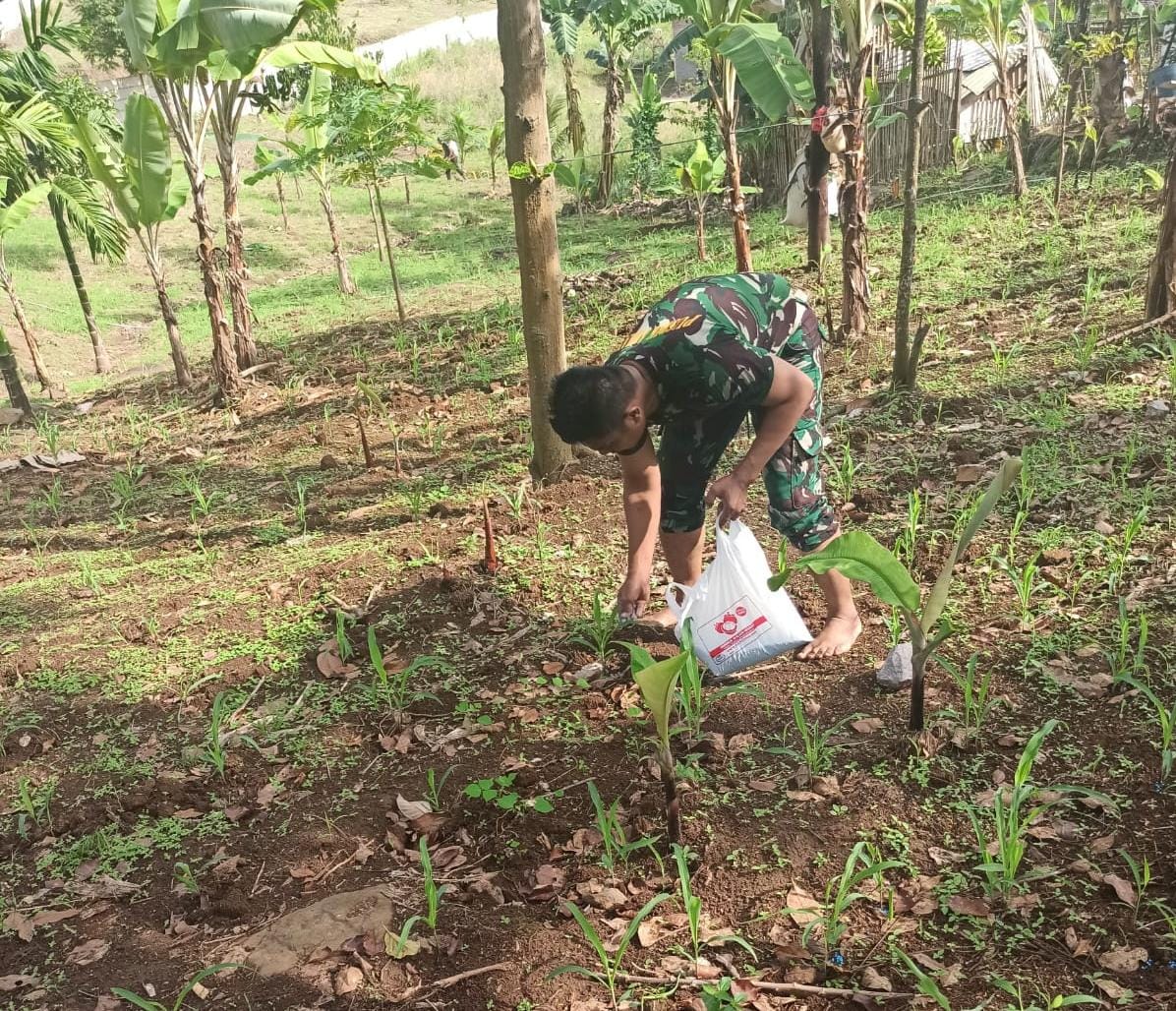 Seperti di Wilayah Koramil 410-02/TBS Kelurahan Sumber Agung, Kecamatan Kemiling saat ini personel Kodim di wilayah 410-02/TBS tengah melakukan perawatan terhadap pohon Jagung.
