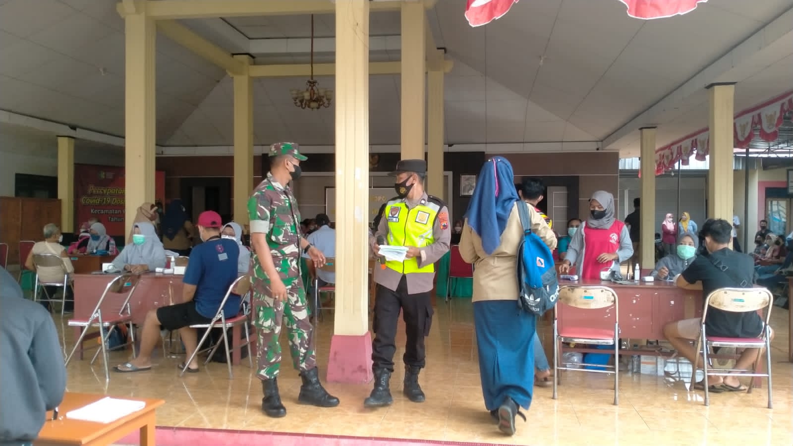 ” Kita terus mendampingi pelaksanaan Vaksinasi, selain itu kita juga membantu kelancaran dan ketertiban selama pelaksanaan kegiatan vaksin, Koramil dan Polsek terus bersinergi ikut mensukseskan program vaksinasi nasional “, imbuh Dwi.(Arda 72).