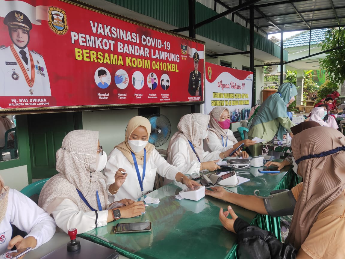 NUSAN. ID, BANDAR LAMPUNG – Upaya percepatan vaksinasi terus dilakukan oleh Jajaran TNI. Seperti yang dilakukan Kodim 0410/KBL yang terus mrnggelar serbuan Vaksinasi Covid-19 guna membangun heard immunity kepada masyarakat Kota Bandar Lampung.