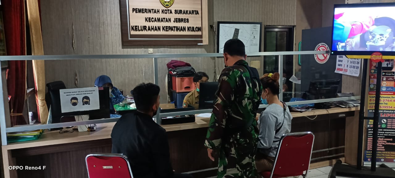 NUSAN.ID, SURAKARTA – Babinsa Kelurahan Kepatihan Kulon Koramil 04/Jebres Kodim 0735/Surakarta Serma Teguh Susanto melaksanakan Pengumpulan Data Teritorial (Puldatater) di Kantor Kelurahan Kepatihan Kulon Jebres dalam rangka memperbaharui data Geo, Demo, Konsos di wilayah binanya, Kamis (27/01/2022)