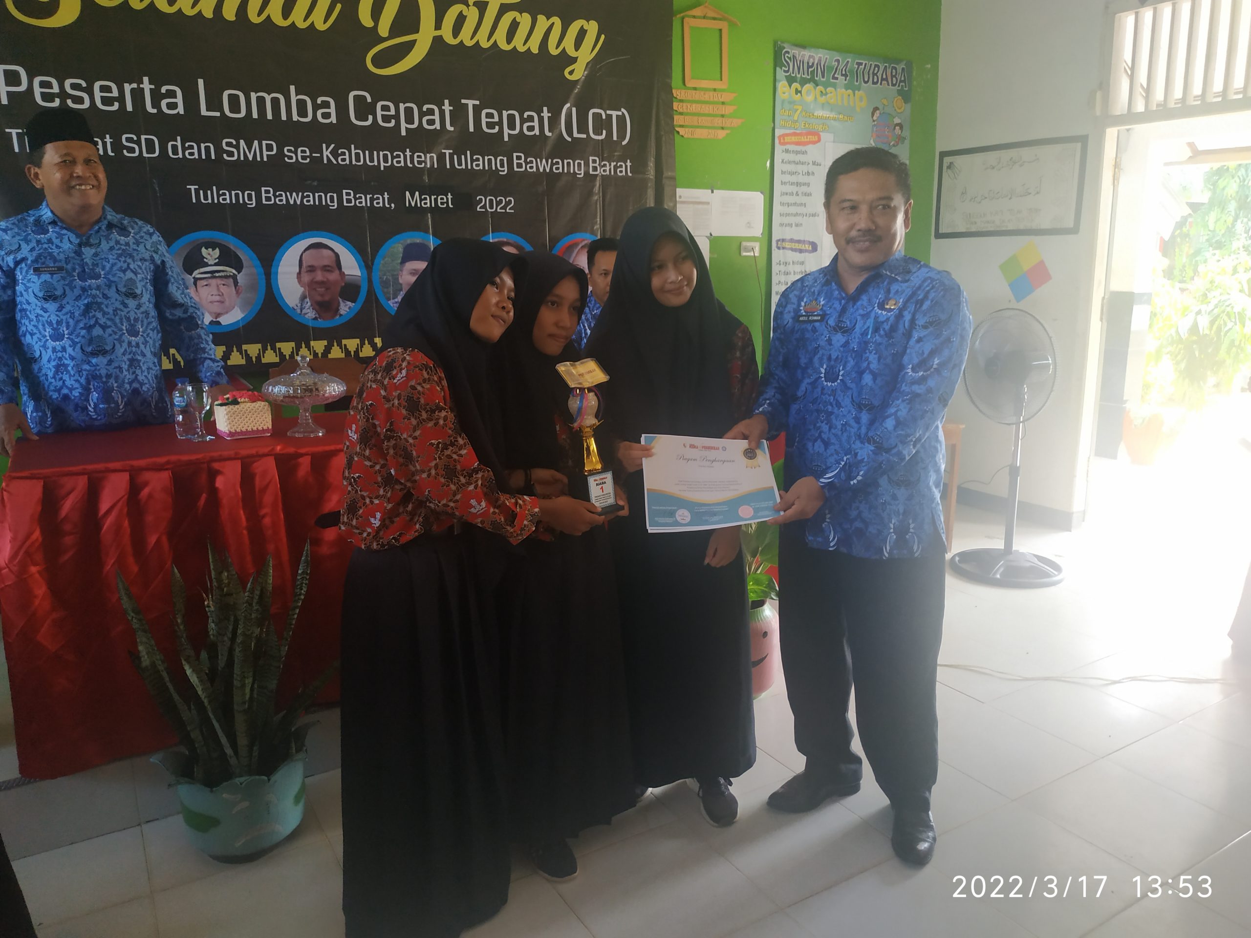 Berikut nama sekolah yang menjuarai lomba cepat tepat tingkat SD. juarai 1 dari SDIT Madani,Tulang Bawang Tengah,dan juara ll SDN 04.Lambu Kibang, sedangkan juara lll SDN 11 Tulang Bawang Udik, selanjutnya untuk tingkat SMP juara l dari SMP Satap 03 TuBaBa,dan juara ll dari SMPN 16 TuBaBa kemudian juara lll dari SMPN 02 TuBaBa.