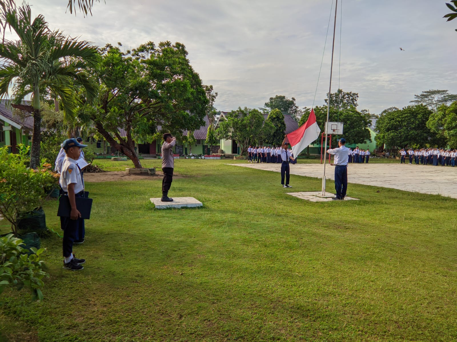 Jadi Pembina Upacara di SMPN 5 Tubaba, Bhabinkamtibmas Polsek Tumijajar Sampaikan Ini