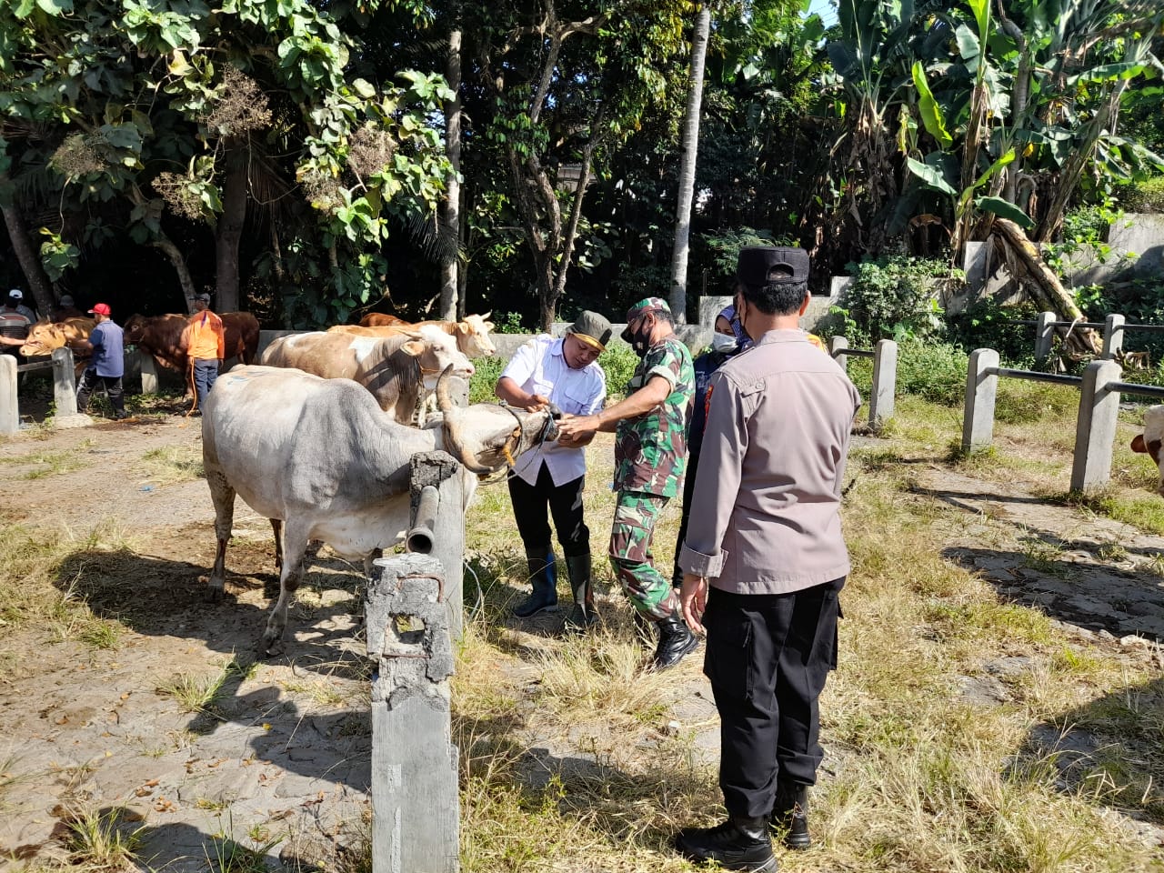 NUSAN.ID, WONOGIRI – Peltu Umar Dhani Anggota Koramil 17/Sidoharjo Kodim 0728/Wonogiri bersama petugas gabungan melaksanakan pengecekan hewan qurban dan peternak yang ada diwilayah masing – masing di pasar hewan Kecamatan Sidoharjo, Kamis (07/07/2022).