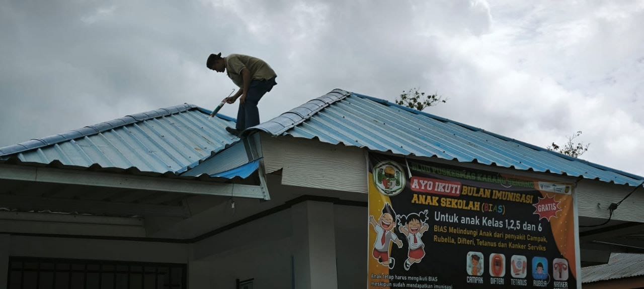 Perbaikan Puskesmas kali ini fokus pada perbai­kan atap (penggantian seng) dan pengecatan dinding.