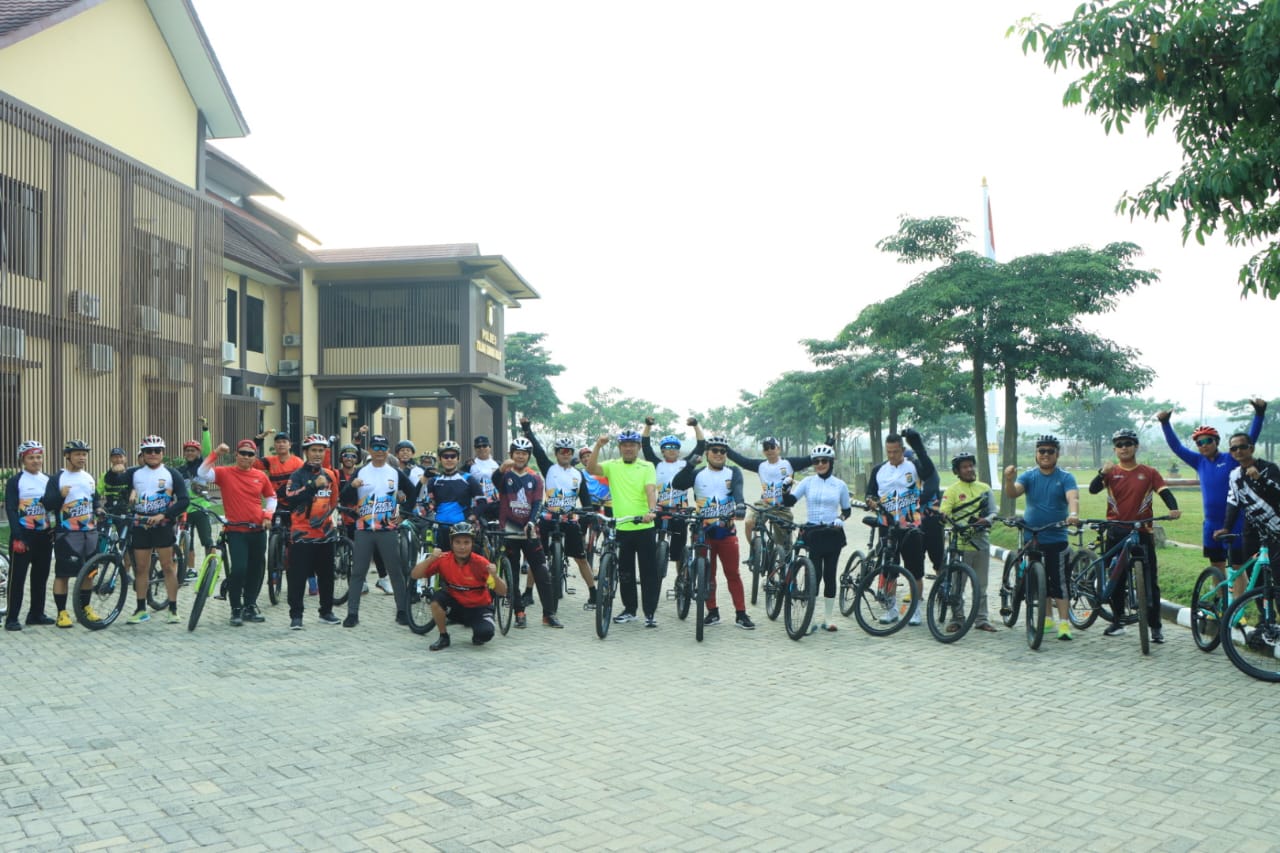 NUSAN.ID – Kapolres Tulang Bawang Barat (Tubaba), Polda Lampung AKBP Sendi Antoni, S.I.K., M.I.K bersama Wakil Bupati Tubaba Nadirsyah beserta Para Pju Polres Tubaba dan Kepala OPD Pemkab Tubaba melaksanakan kegiatan gowes bareng pada hari Selasa pagi (16/09/2025). Kegiatan ini dilakukan untuk mempererat sinergitas sekaligus memantau secara langsung situasi keamanan dan ketertiban masyarakat (Harkamtibmas) di wilayah Kabupaten Tulang Bawang Barat.