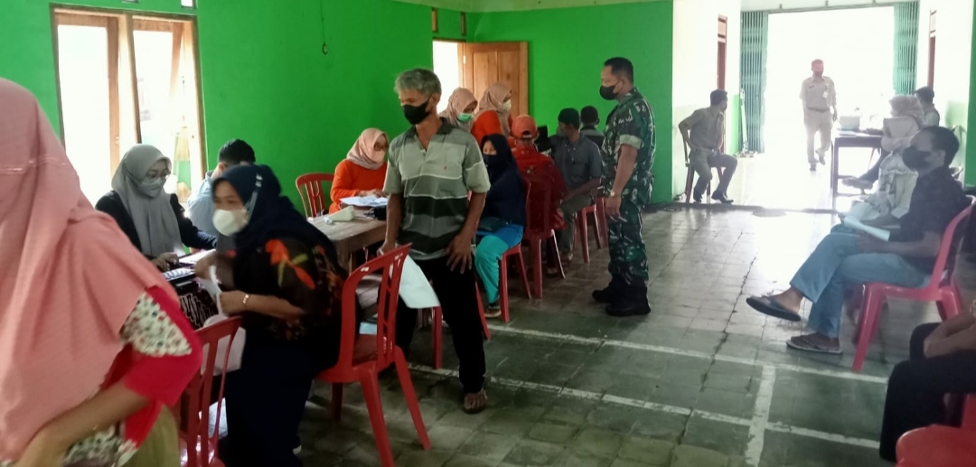 “ Pelaksanaan vaksin di aula digelar dengan tetap menerapkan Protokol Kesehatan (Prokes) yang ketat, dimulai dari memakai masker, mencuci tangan, menjaga jarak serta menghindari kerumunan dengan sistem antrian yang tertib “, ucap Danramil.