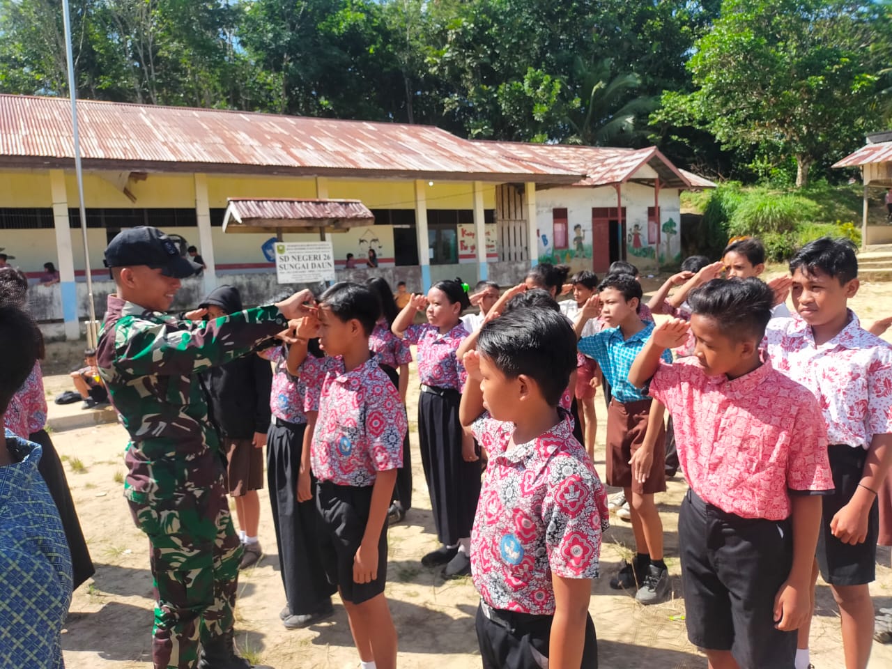 Sementara itu, Kepala Sekolah SDN 26 Sei Daun menyampaikan terima kasih kepada prajurit Satgas Yonif 645/Gty karena sudah mau membantu mengajar siswa/siswi di sekolahnya.