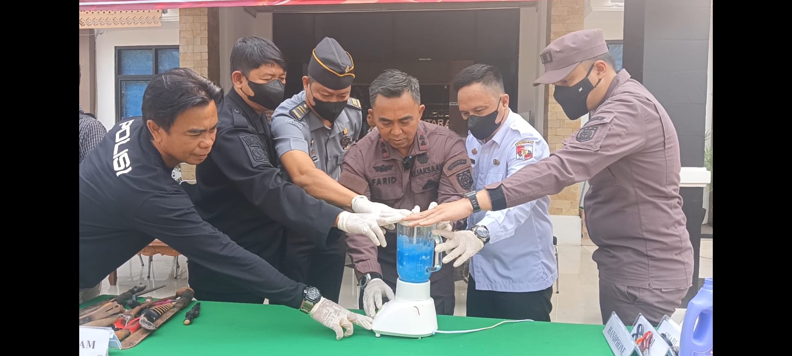 Pemusnahan narkoba dilakukan dengan cara diblender. Sedangkan senjata tajam dengan cara dipotong menggunakan gerinda. Selain itu ganja dan pil koplo dibakar dan handphone dipukul dengan palu.