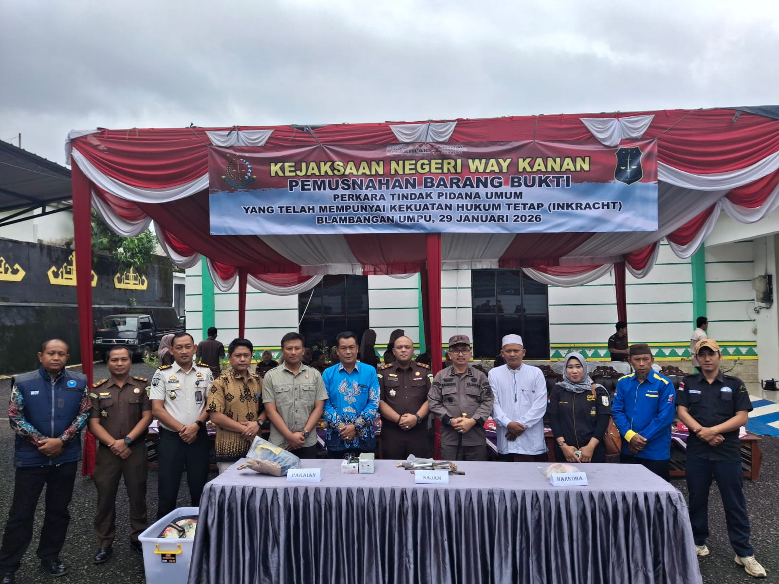 NUSAN.ID – Kejaksaan Negeri Way Kanan melakukan Pemusnahan Barang bukti yang telah mempunyai kekuatan hukum tetap bertempat di Halaman kantor Kejaksaan Negeri setempat Kamis (29-01-2026).