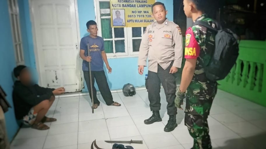 NUSAN.ID, BANDAR LAMPUNG – Sertu Handoko Babinsa Koramil 410-01/Panjang Kodim 0410/KBL bersama rekannya Bhabinkamtibmas Polsek Panjang dan komponen warga melakukan pencegahan rencana aksi tawuran antar pemuda.