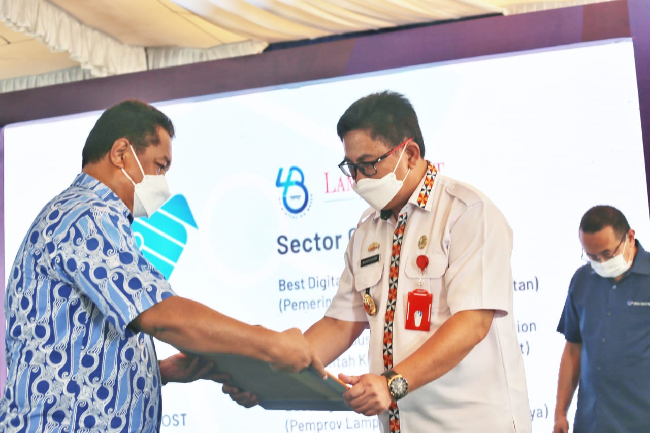 Penghargaan Best Green Sustainability Implementation diberikan kepada Pemkab Lambar sebagai bentuk apresiasi Lampung Post kepada para pihak yang telah berhasil menerapkan best practice teknologi digital serta berkomitmen dan berkontriusi dalam upaya mendukung keberlanjutan lingkungan (Go Digital Go Green).