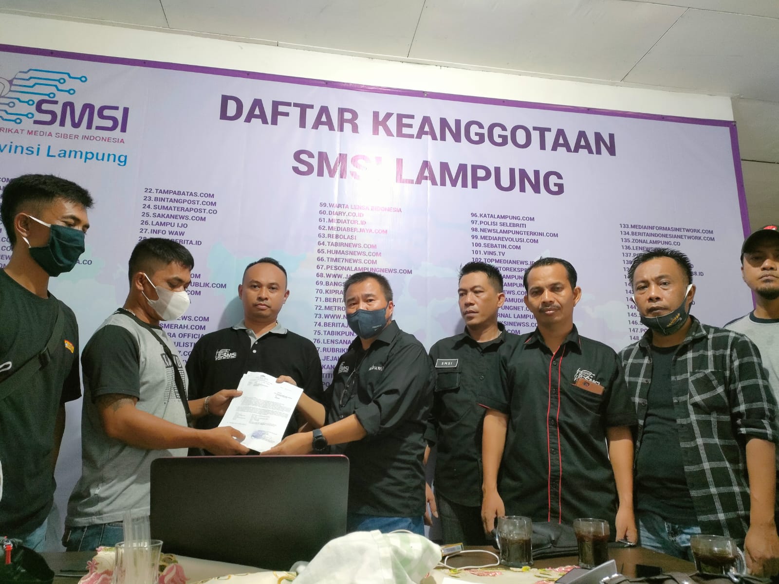 “Kita tidak membela siapapun, tetapi kita minta semua proses yang berjalan sesuai dengan sebagaimana mestinya,” jelas Owner Saibumi.com, usai menerima laporan dua warga asal Natar, di kantor SMSI Provinsi Lampung di jalan Gatot Subroto, Pahoman, Kota Bandarmapung, Selasa (15/03/2022).
