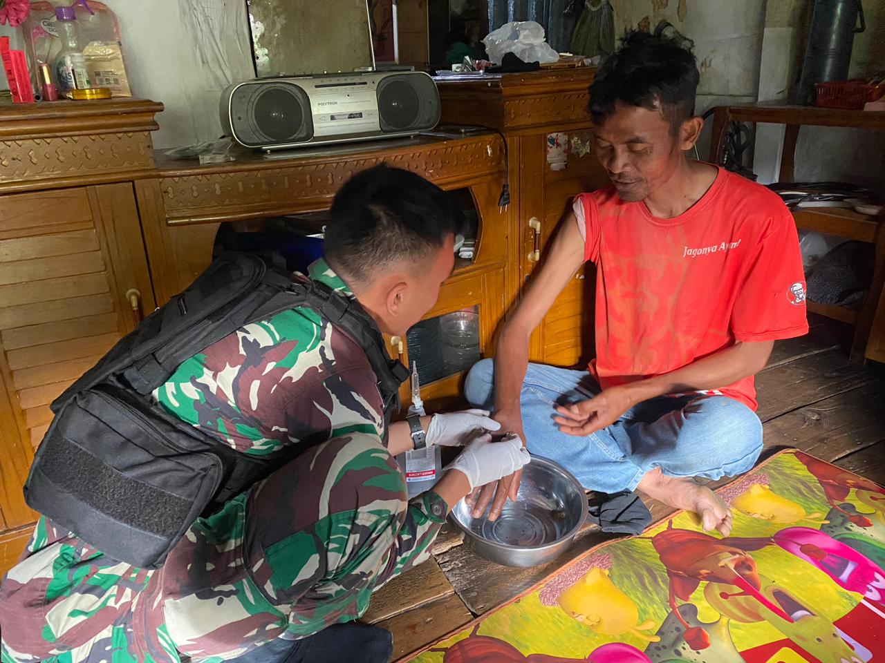 NUSAN.ID, BOGOR – Dalam rangka pelaksanaan latihan penyiapan Pratugas Satgas Organik Papua TA 2023, Yonif Raider 300/Brajawijaya didampingi Babinsa Sertu Tomi dari Koramil 2414/Ciwidey melaksanakan aplikasi pengobatan gratis secara door to door kepada warga Buninegara dan Kampung Persil Ciwidey.
