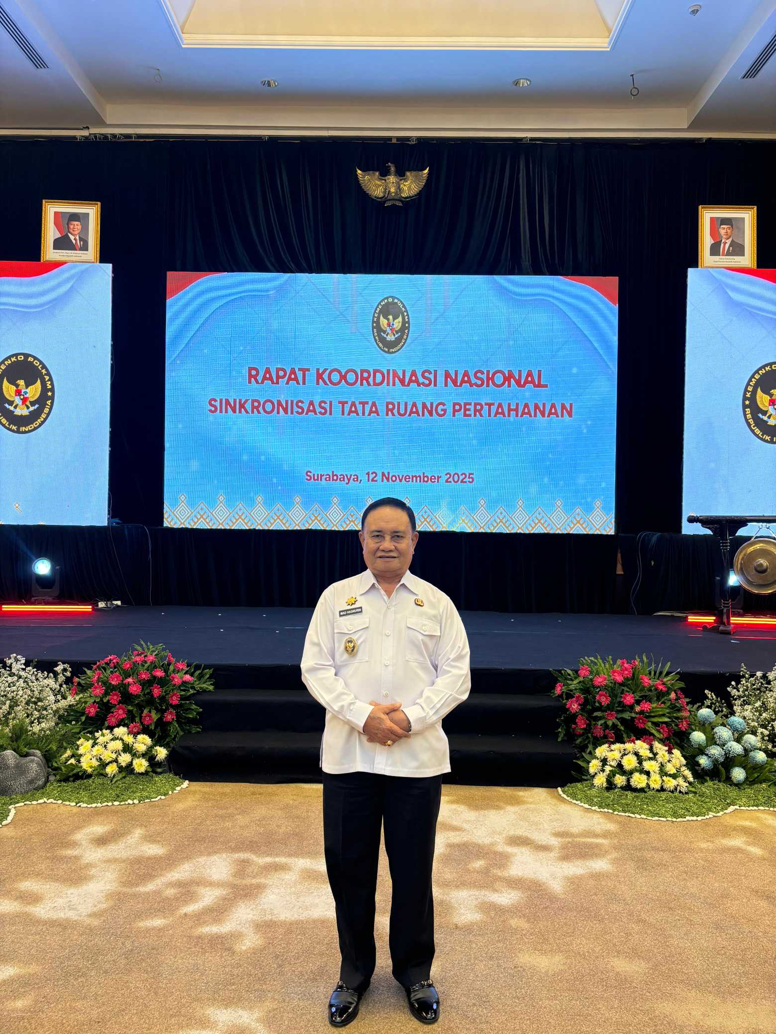 NUSAN.ID – Wakil Bupati Lampung Barat, Mad Hasnurin menghadiri Rapat Koordinasi Nasional Sinkronisasi Tata Ruang Pertahanan di Hotel Shangri-La Surabaya, Rabu 12 November 2025.