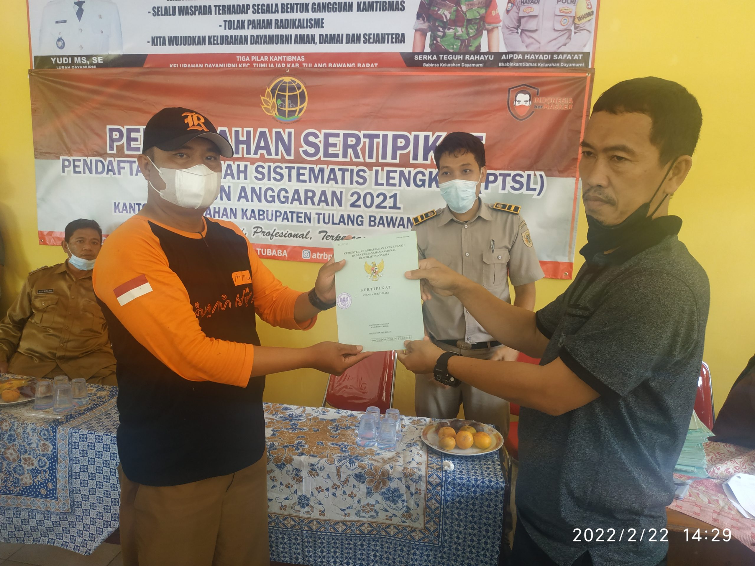 NUSAN. ID, TULANG BAWANG BARAT – Program dari Kementerian Agraria dan Tata Ruang/Badan Pertanahan Nasional (ATR/BPN) telah disalurkan ke Kelurahan Dayamurni, Kecamatan Tumijajar – Tulang Bawang Barat. Selasa (22/02/2022).