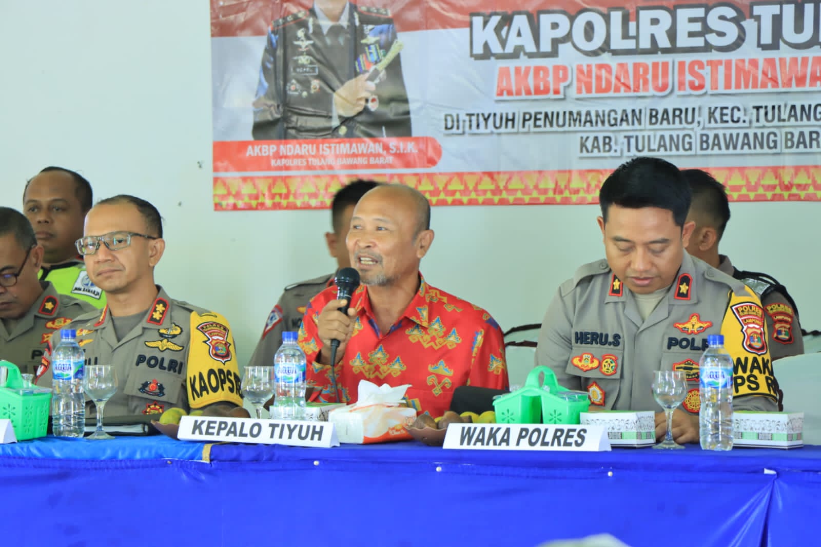 NUSAN.ID, TULANG BAWANG BARAT – Kapolres Tulang Bawang Barat Polda Lampung AKBP Ndaru Istimawan, S.I.K dan Jajarannya dalam rangka menampung segala bentuk keluhan masyarakat serta mewujudkan Polri Hadir di tengah masyarakat, menggelar kegiatan “Jumat Curhat” yang dilaksanakan di Balai Tiyuh/Desa Penumangan Baru, Kecamatan Tulang Bawang Tengah, Kabupaten Tulang Bawang Barat, Jumat (17/02/2023).