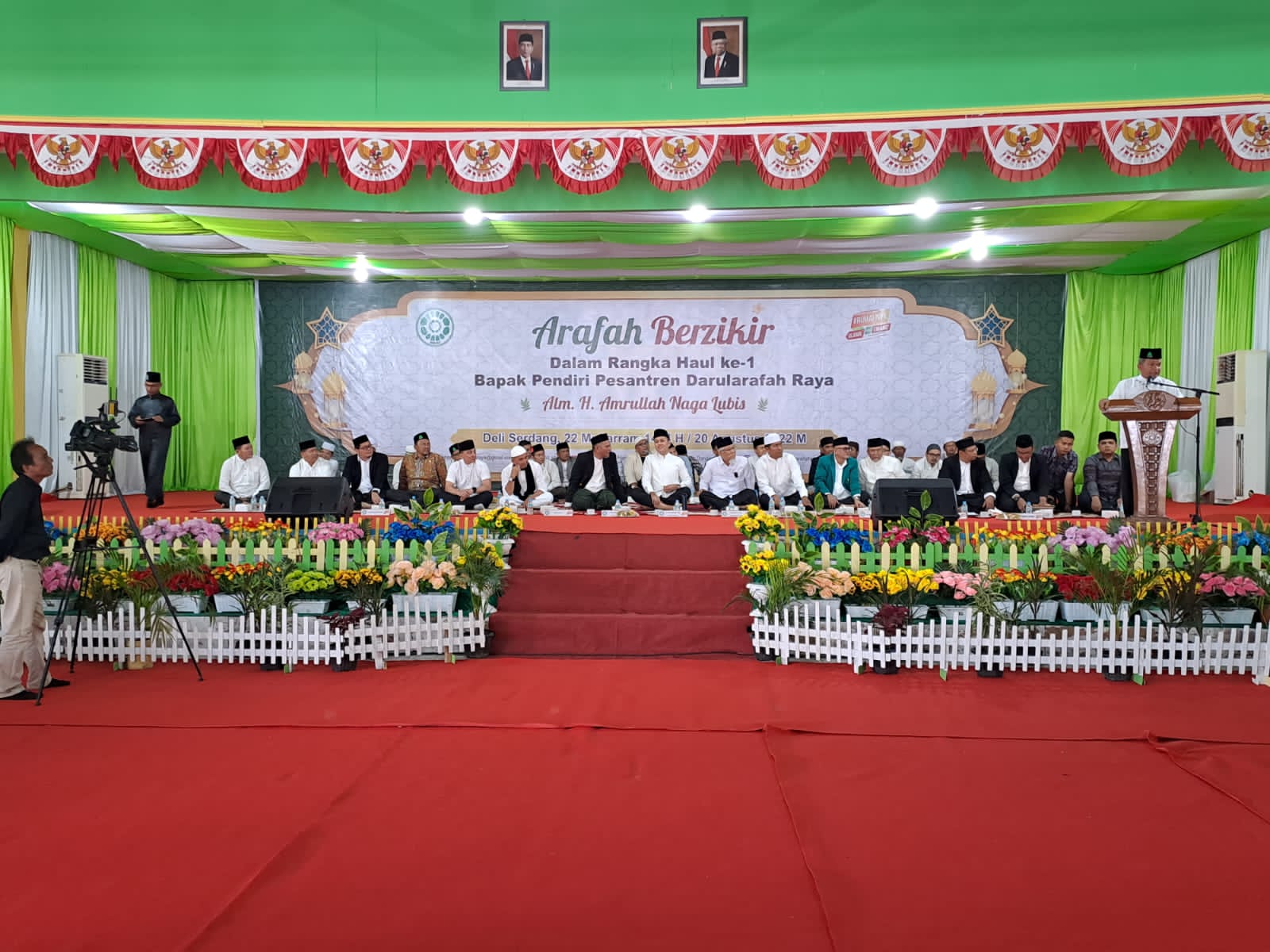 Acara Haul yang digelar secara khidmat dengan pelaksanaan Arafah Berdzikir itu dilangsungkan di Aula Al Munawwarah Pesantren Darul Arafah, Desa Lau Bakeri, Kecamatan Kutalimbaru, Kabupaten Deli Serdang.