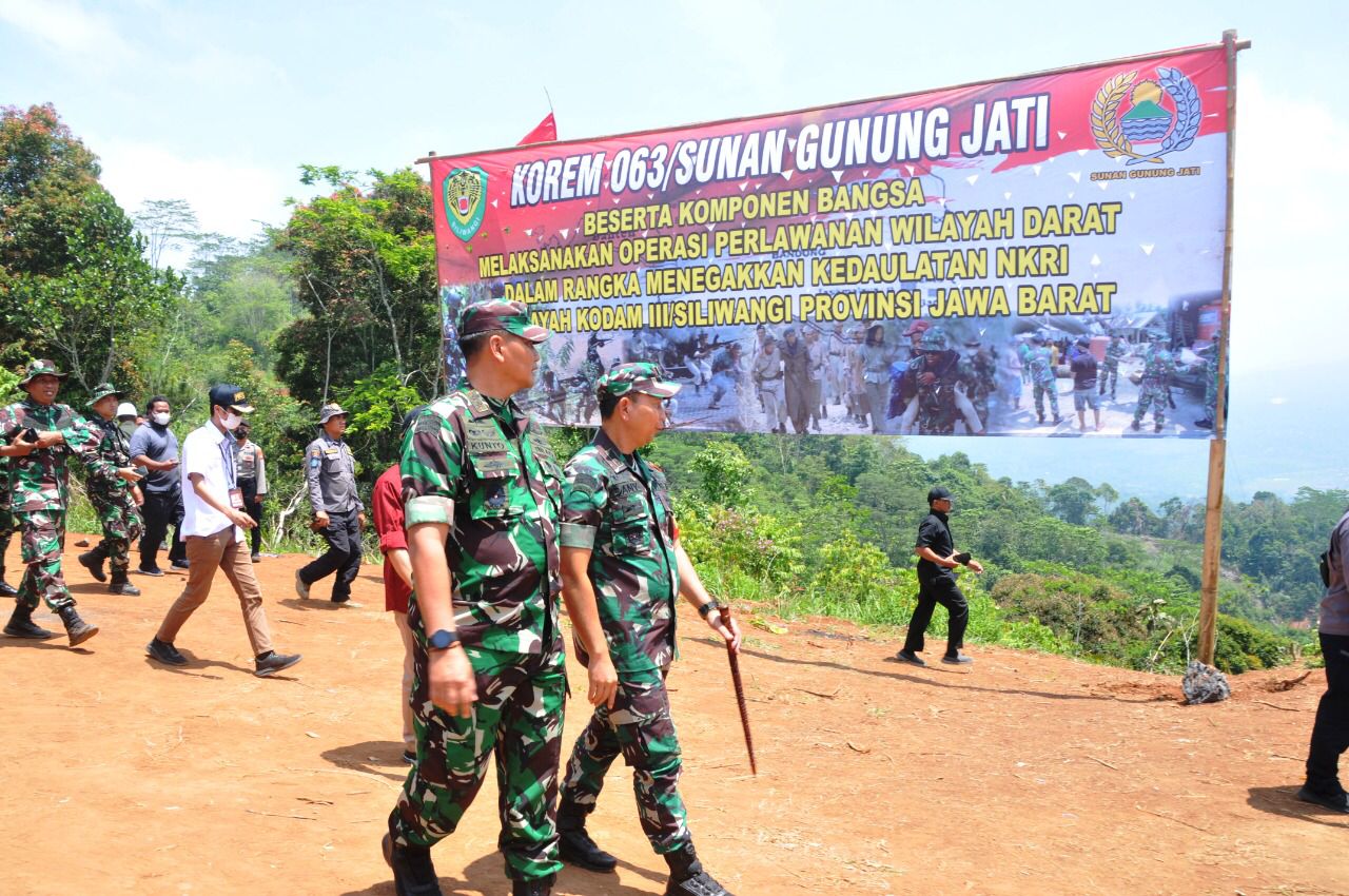NUSAN.ID, KUNINGAN – Dalam rangka operasi perlawanan wilayah darat, Korem 063/SGJ Kodam III/Slw menggelar Latihan Taktis Intel, Teritorial, Tempur dan dukungan terintegrasi komponen bangsa di wilayah. Latihan terintegrasi tersebut mendapat perhatian dan ditinjau langsung Pangdam III/Slw Mayjen TNI Kunto Arief Wibowo yang didampingi para pejabat jajaran Kodam III/Slw.