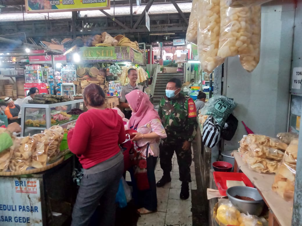 NUSAN.ID, SURAKARTA – Dalam upaya mengantisipasi gangguan Kamtibmas dan memberikan rasa aman serta nyaman kepada warga masyarakat sekaligus melakukan sosialisasi protokol kesehatan dalam penerapan PPKM guna memutuskan mata rantai covid-19, Babisa kelurahan Sudiroprajan Koramil 04/Jebres Kodim 0735/Surakarta Serda Agus didampingi security dengan metode sambang pasar kepada pedagang dan pembeli di Pasar Gede Kelurahan Sudiroprajan Kecamatan Jebres, Selasa (06/09/2022).