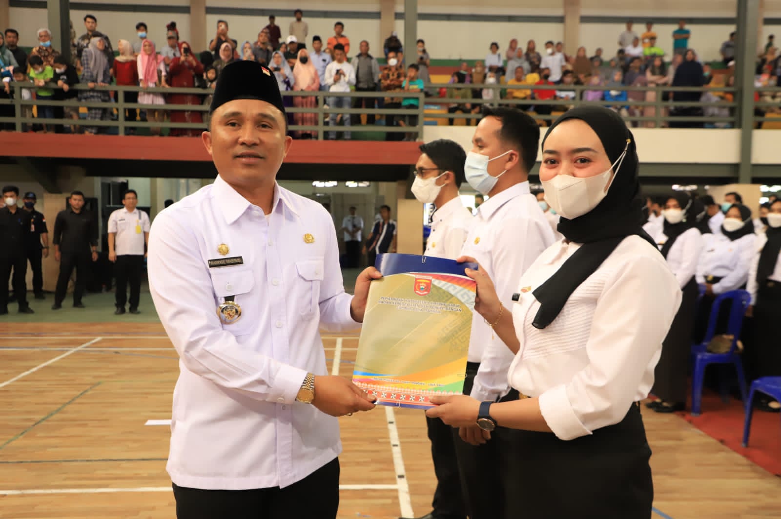 Kegiatan penyerahan petikan keputusan Bupati Lampung Barat H. Parosil Mabsus tentang pengangkatan Pegawai Negeri Sipil (ASN) dan penyerahan petikan surat keputusan pengangkatan PPPK tersebut dilakukan terhadap tenaga kesehatan dan tenaga pendidik (guru).