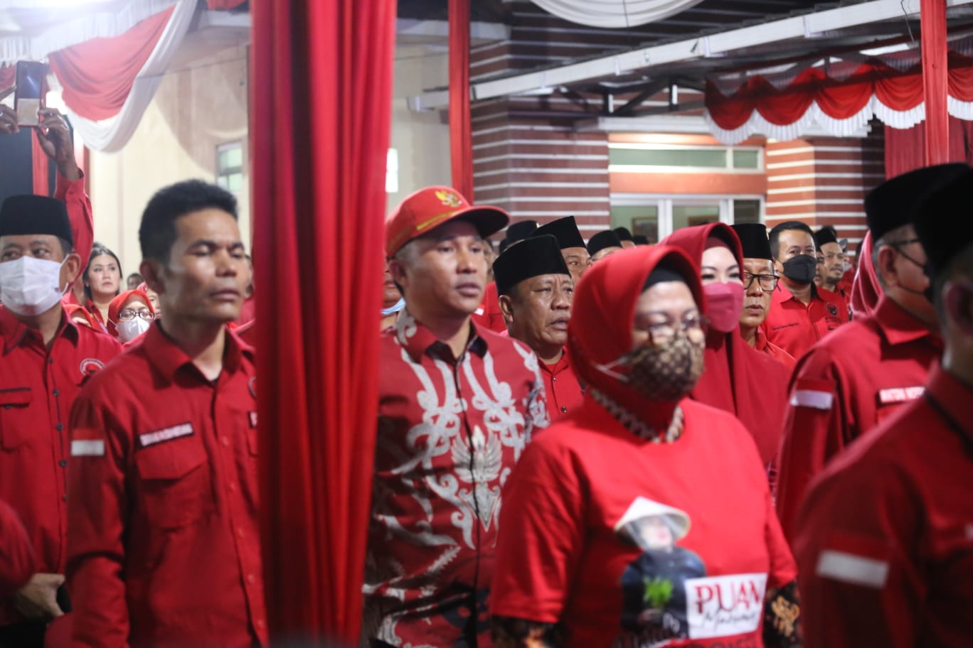 Para petinggi PDI Perjuangan tersebut di antaranya Ketua DPR RI Puan Maharani, Sudin dan Mukhlis Basri serta dihadiri pula oleh para ketua DPC PDI Perjuangan se-Provinsi Lampung dan para pengurus.(Kominfo/Eis)
