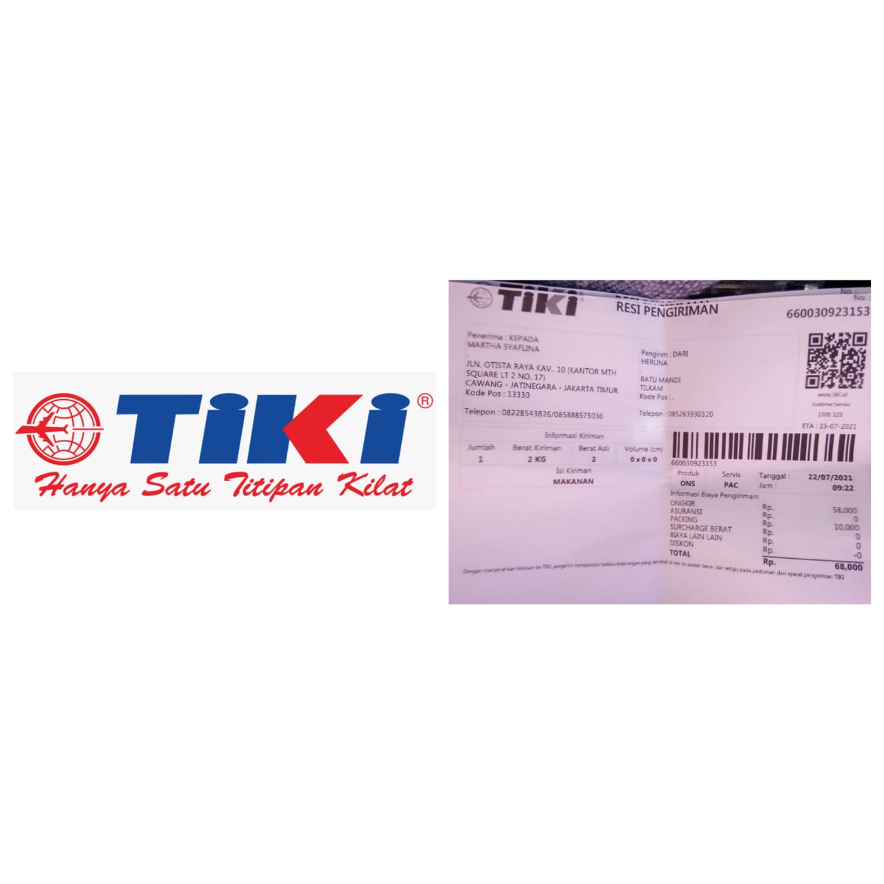 NUSAN.ID,JAKARTA – Pelanggan layanan ekpedisi Titipan Kilat alias Tiki mengamuk lantaran paket makanan basahnya tidak diantar sesuai proses layanan yang tersedia, Sabtu, 24 Juli 2021. Pasalnya, layanan _One Night Service_ atau layanan satu malam sampai yang ada tidak sesuai dengan estimasi waktu sampai. Hal ini membuat pelanggan marah dan kesal.