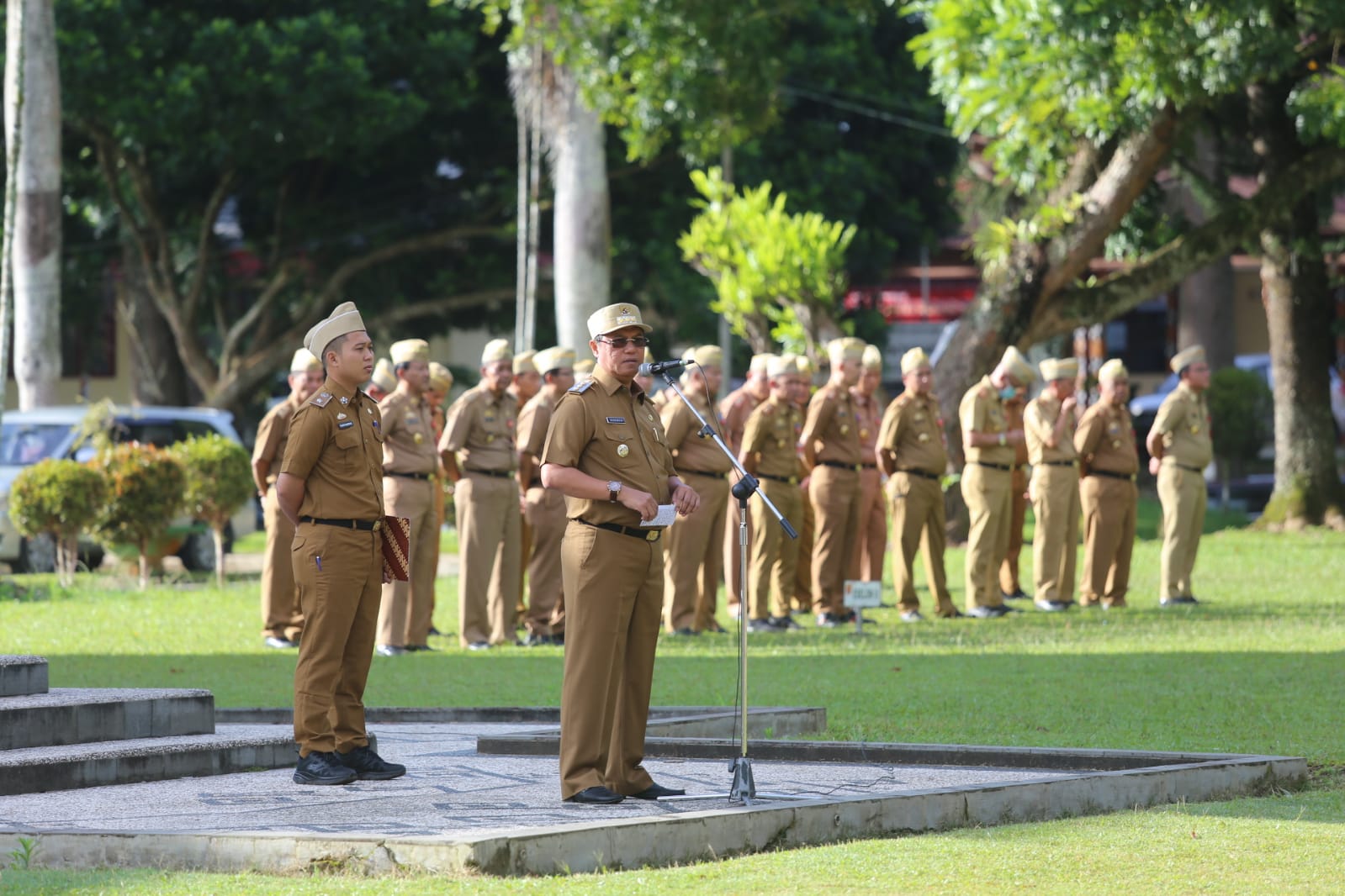 Pj. Bupati Nukman bertindak sebagai Pembina Apel, dalam arahannya, Pj. Bupati menyampaikan kepada seluruh jajaran Aparatur Sipil Negara (ASN) dilingkungan Pemerintah Kabupaten Lampung Barat untuk terus meningkatkan kedisiplinan dan kinerja.