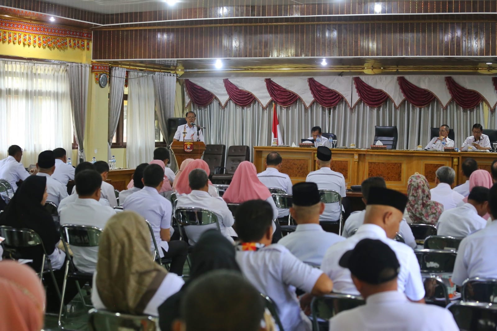 Kegiatan yang berlangsung di Aula Kagungan Setdakab itu, dipimpin Penjabat (Pj) Sekretaris Daerah (Sekda) Drs. Adi Utama dan Asisten Bidang Administrasi Umum Drs. Ismet Inoni, Staf Ahli Bupati Sugeng Raharjo serta diikuti Kepala Perangkat Daerah, Camat se-kabupaten Lampung Barat.