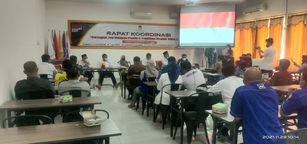 NUSAN.ID, BANDAR LAMPUNG – Plh Pasi Intel Kodim 0410/KBL Letda Inf Sunarto SE, menghadiri acara pembukaan Rapat Koordinasi persiapan Pra-Tahapan Pemilu & Pemilihan serentak tahun 2024 di Aula KPU Kota Bandar Lampung Jln. Pulau Sebesi Sukarame Kota Bandar Lampung, Senin (29/11/2021)