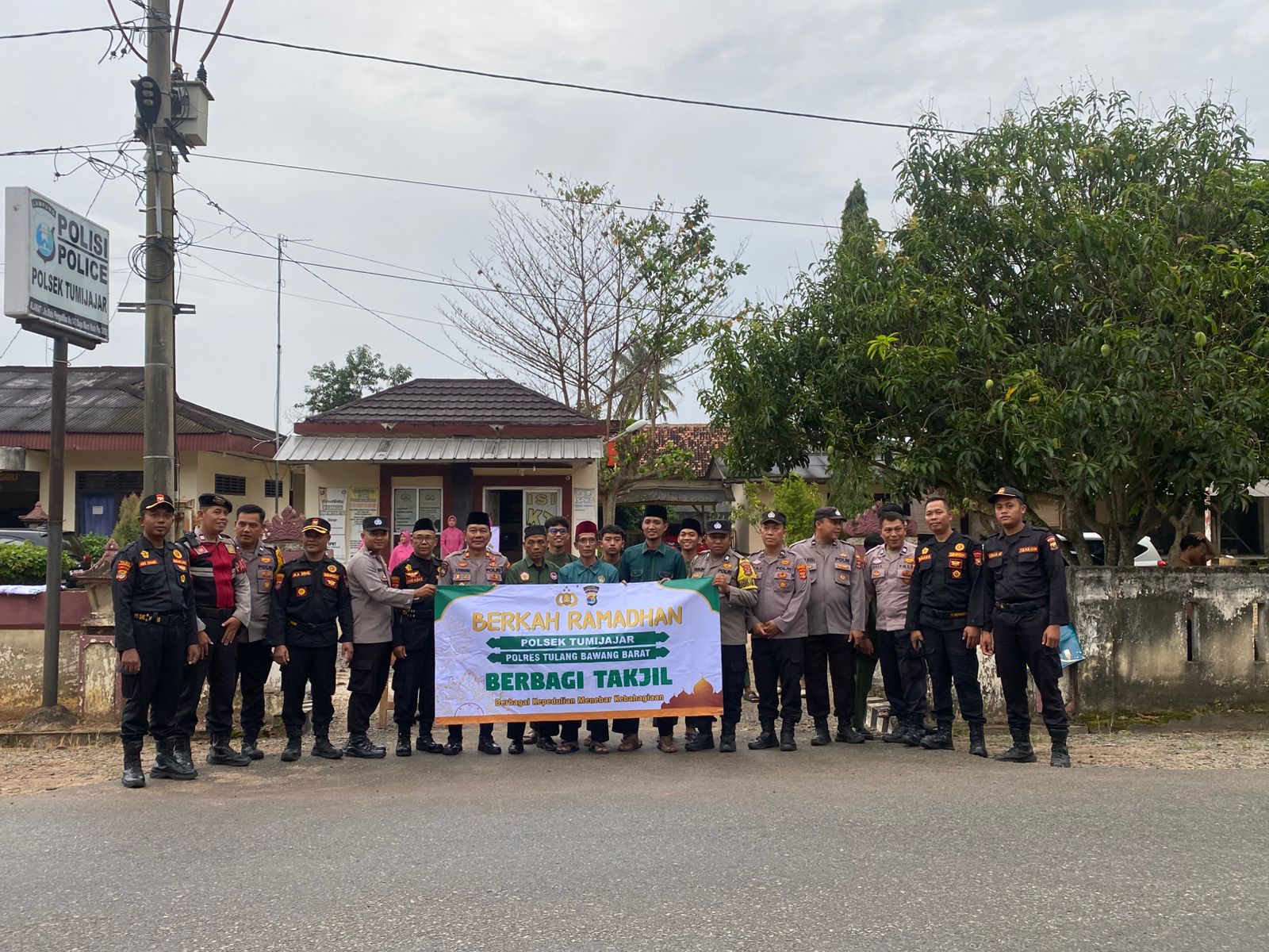 NUSAN.ID – Suasana hangat Ramadhan terasa di depan Mapolsek Tumijajar, Kapolsek Tumijajar beserta Pengurus Bhayangkari Ranting Tumijajar beserta Personel Polsek dengan menggandeng ormas dan instansi terkait Senkom Mitra Polri, Kantor urusan Agama dan DPD LDII Tulang Bawang Barat (Tubaba), turun langsung ke jalan membagikan takjil gratis kepada para pengguna jalan yang melintas menjelang waktu berbuka puasa. Jumat (06/03/2026).