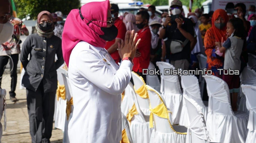Bupati Tulang Bawang Dr Hj Winarti SE MH didampingi Kapolres Tulang Bawang, Dandim 0426 Tulang Bawang,kadis Pendidikan ,Kadis Kesehatan ,Kadis Pertanian , Kepala Bkpp, Kadis Ppkb , Kadis Kominfo ,Kadis Ptsp ,Kadis Dukcapil, Kadis Sosial,Kadis Dispora ,Kabag Umum,Kabag Kesra ,Kabag Organisasi ,Kabag Tapem Kab. Tulang Bawang.