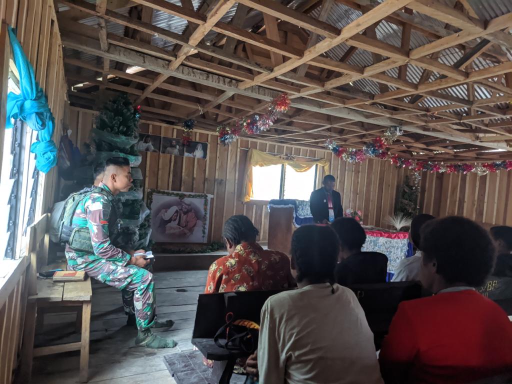 NUSAN.ID, NDUGA – Dalam menyambut hari perayaan Natal Personel Satgas Yonif Raider 321/GT/13/1 Kostrad melaksanakan ibadah minggu bersama masyarakat Jemaat Gereja untuk meningkatkan keimanan, bertempat di Distrik Dal, Kabupaten Nduga, Papua.
