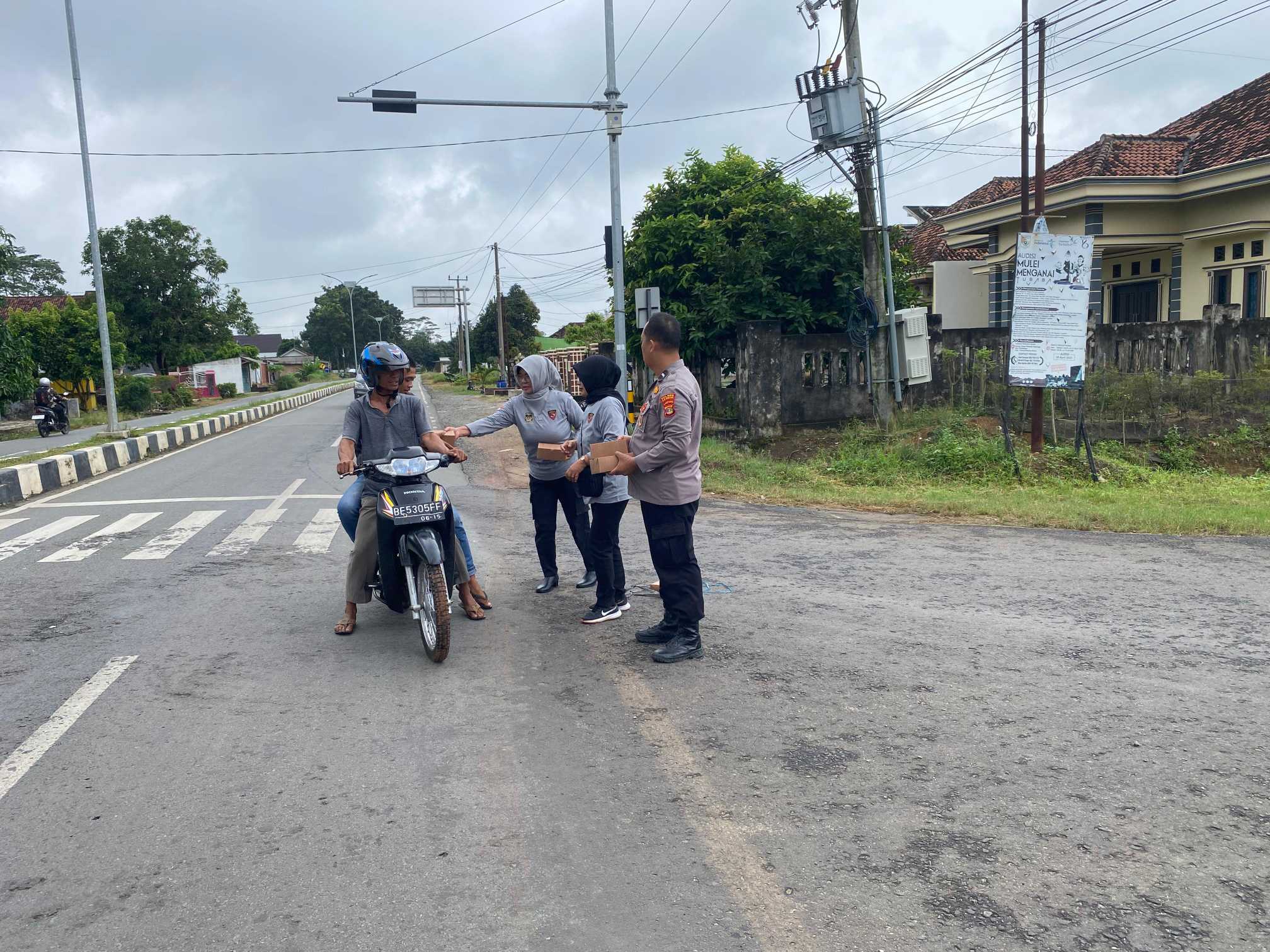 NUSAN.ID – Dalam rangka mempererat hubungan Polri dengan masyarakat, Sat Binmas Polres Tulang Bawang Barat (Tubaba), bersama KBPP Polri Resort Tubaba melaksanakan kegiatan Sahabat Binmas (Selalu Hadir Berbuat Bermanfaat) melalui program Jumat Berkah Berbagi dengan membagikan 50 nasi kotak kepada para pengendara kendaraan yang melintasi di jalan Raya Panaragan Jaya, Kecamatan Tulang Bawang Tengah, Kabupaten Tulang Bawang Barat. Jumat (30/01/2026).