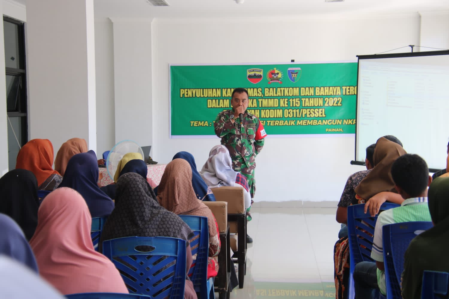 NUSAN.ID, PAINAN – Satgas TMMD ke 115 Kodim 0311/Pessel menyelenyenggarakan kegiatan Non Fisik yaitu kegiatan penyuluhan Bahaya Laten Komunis (Balatkom) dan Bahaya Teroris