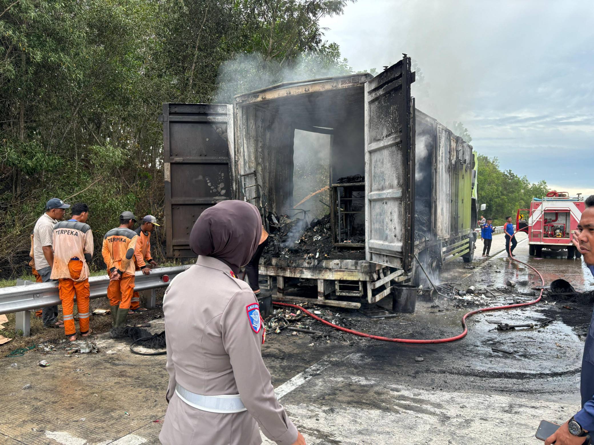 Satlantas Polres Tulang Bawang Barat Bergerak cepat Amankan Situasi Truck Terbakar di Ruas Tol Terpeka