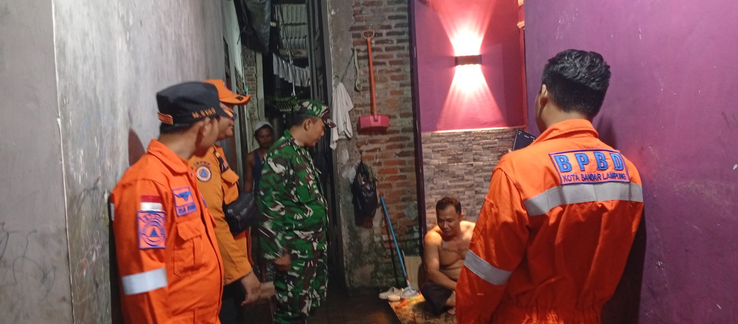 NUSAN.ID – Menghadapi fenomena banjir rob (air laut pasang) hari kelima yang melanda kawasan pesisir, Babinsa Kelurahan Kangkung, Sertu Aris Susilo, bersama unsur pemerintah dan BPBD Kota Bandar Lampung, turun langsung memantau dan mengedukasi masyarakat pada Jumat malam (07/11/2025).