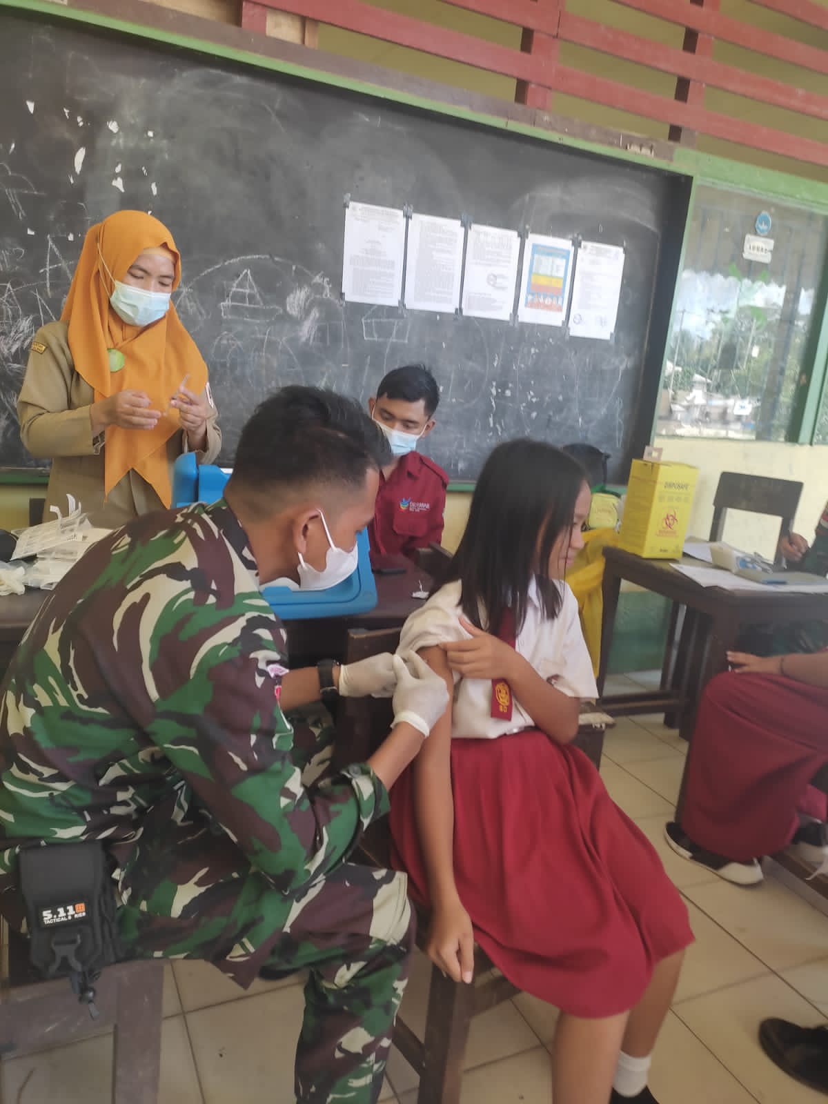 “Tim kesehatan Satgas Pamtas Yonarmed 19/105 Trk Bogani kita kerahkan untuk berkolaborasi dengan tenaga kesehatan setempat untuk membantu dalam pemberian vaksin kepada siswa di SDN 08 Sebindang,” Ujar Dan Satgas.