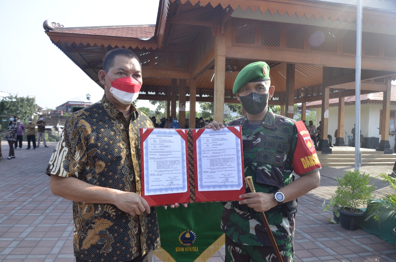 NUSAN.ID, SURAKARTA – Kodim 0735/Surakarta telah melaksanakan program TMMD (TNI Manunggal Membangun Desa) sengkuyung tahap II ditahun 2022 di Desa Cinderejo Kidul, Rt 02. Rw VII Kelurahan Gilingan Kecamatan Banjarsari. Pengerjaan TMMD memakan waktu 30 hari tersebut telah selesai 100%. TMMD bertujuan untuk membantu Pemerintah Daerah untuk mempercepat akselerasi didaerah terpencil agar setara dengan desa lainnya serta memelihara dan meningkatkan gotong royong serta kemanunggalan TNI -Rakyat. TMMD Sengkuyung tahap II di Wilayah Kodim 0735/Surakarta secara resmi ditutup oleh Komandan Kodim 0735/Surakarta Letkol Inf Devy Kristiono S.E, M.Si, Rabu (24/08/2022).